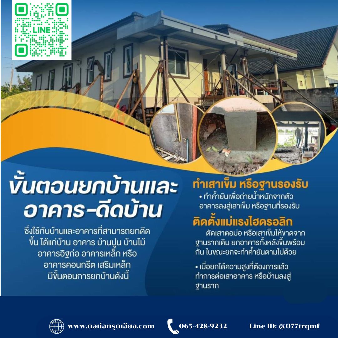 รับจ้างดีดบ้าน…… ยกบ้าน ดีดบ้านไม้…… ดีดบ้านปูน…… ดีดบ้านทั้งหลัง ดีดอาคาร ซ่อมบ้านทรุด แก้ไขปัญหาบ้านเอียง ยกอาคาร สํานักงาน เสริมเสาเข็ม ไมโครไพล์ พร้อมให้คําแนะนําและกํากับดูแลวิศวกร และทีมงานช่างดีดบ้านมืออาชีพ มากประสบการณ์ ในการดีดบ้าน ซ่อมบ้านทรุด แก้ไขบ้านทรุดเอียง ซ่อมฐานรากบ้าน